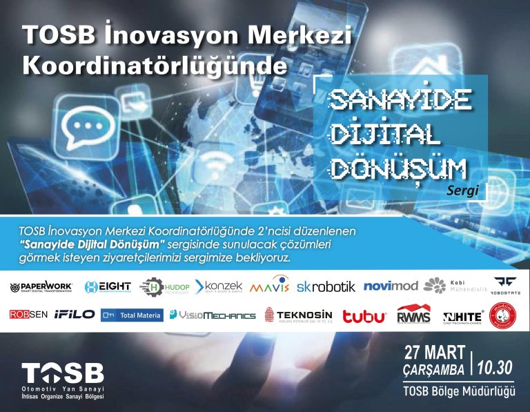 TOSB İnovasyon Merkezi Koordinatörlüğü’nde 2’ncisi düzenlenen “Sanayide Dijital Dönüşüm Sergisi” nde dijital çözüm örneklerini bir arada görebileceksiniz.
